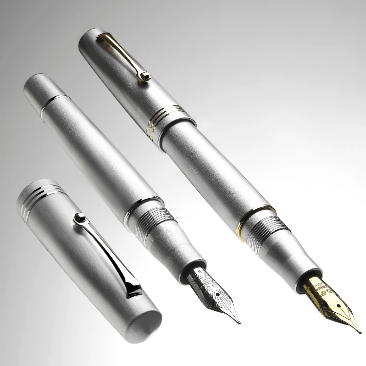 알루미늄은 지각 깊숙한 곳에서 형성된 퇴적암 광물인 보크사이트(bauxite)에서 얻어지는 금속으로, 가볍고 유연하면서도 뛰어난 반사 특성을 지니고 있습니다. 이러한 알루미늄의 성질은 Momento Zero Aluminia의 표면 위에 그대로 드러나며, 견고하면서도 세련되고, 가볍지만 단단한 만년필의 인상을 완성합니다. 솔리드 바 형태의 순수 알루미늄을 정밀 가공한 뒤 브러시드 마감으로 완성하였으며, 표면에는 스위스산 무색 보호 처리를 적용해 금속의 내구성을 높이고 은은한 진주빛 광택을 유지하도록 했습니다.