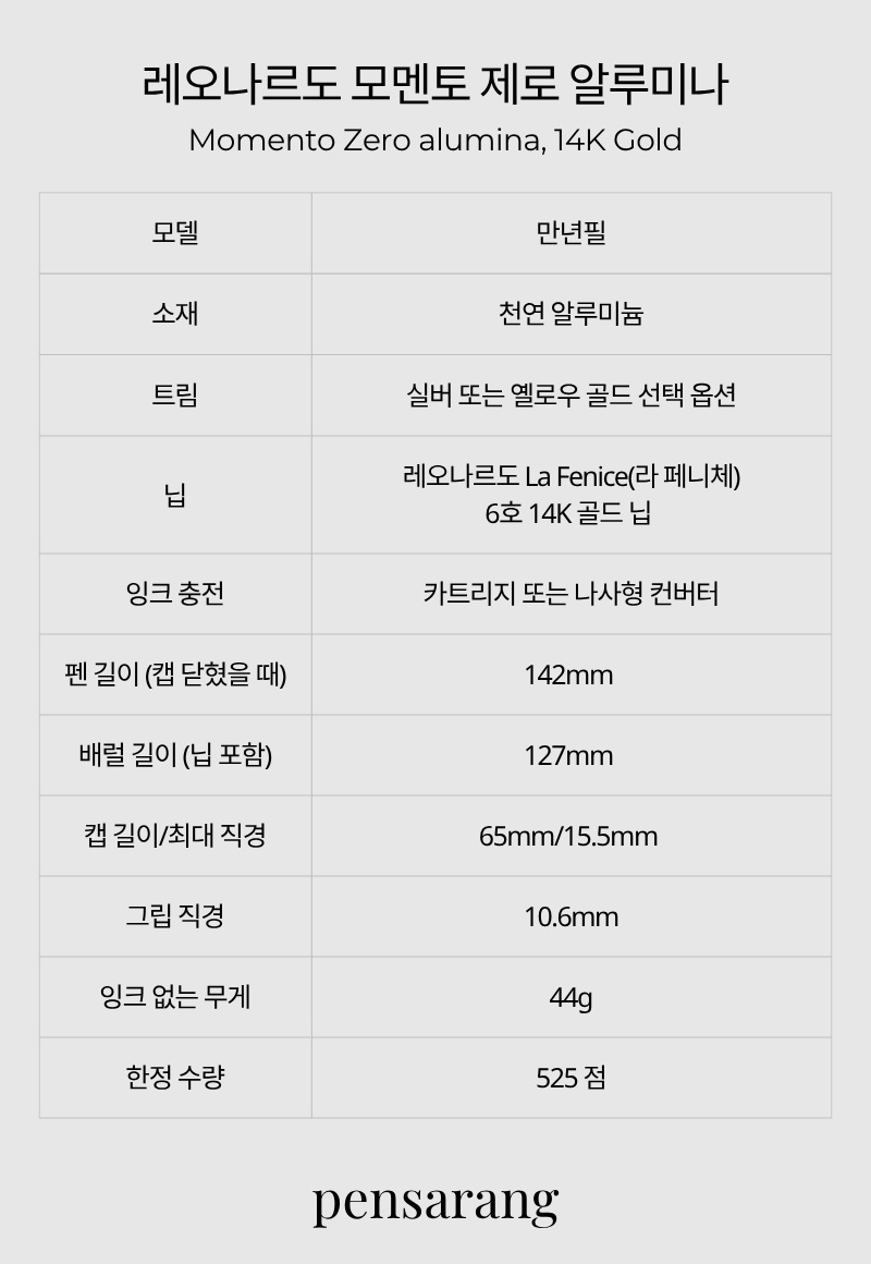 레오나르도 모멘토 제로 알루미나 만년필 14K 골드 닙