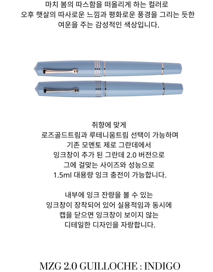 수작업으로 제작되는 필기구의 특성상, 각 펜마다 고유한 패턴과 무늬를 지니고 있습니다. 같은 제품이라도 배럴의 패턴, 질감, 칠 등의 표현이 일정하지 않을 수 있으며 상품 페이지의 이미지와 다소 상이할 수 있습니다. 이는 수작업으로 제작된 제품의 자연스러운 특성으로 제품 하자의 사유로 간주되지 않습니다.