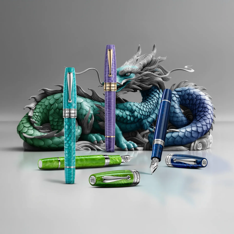 이탈리아가 ‘펜의 왕자’라 부르는 Extra에, 신세대 Juma® 레진이 더해지며 새로운 차원의 존재감이 펼쳐집니다. 시대를 초월한 실루엣에 현대적 표현력까지 담아낸 이번 에디션은 용의 해에 제작된 특별 에디션으로 888피스 한정 제작되었습니다. 네 가지 최면 같은 컬러 속에 용(龍)의 기운을 담았습니다. 자연의 결을 닮은 바이오필릭 텍스처는 일상의 필기를 특별한 경험으로 끌어올리며, 서로를 알아볼 ‘운명 같은 주인’을 기다리는 듯한 존재감을 드러냅니다. 지름 8mm의 커스텀 ‘Hungry Dragon’ 18K 골드 닙과 정밀 가공된 에보나이트 피드가 장착되어 압도적 수준의 필기 품질을 제공합니다.