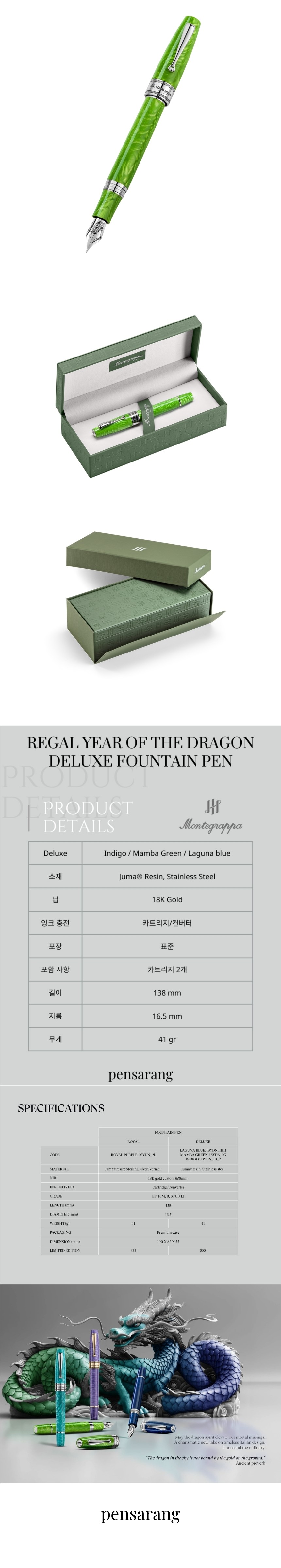 몬테그라파 용의 해 라구나 블루 만년필 18K 골드 닙