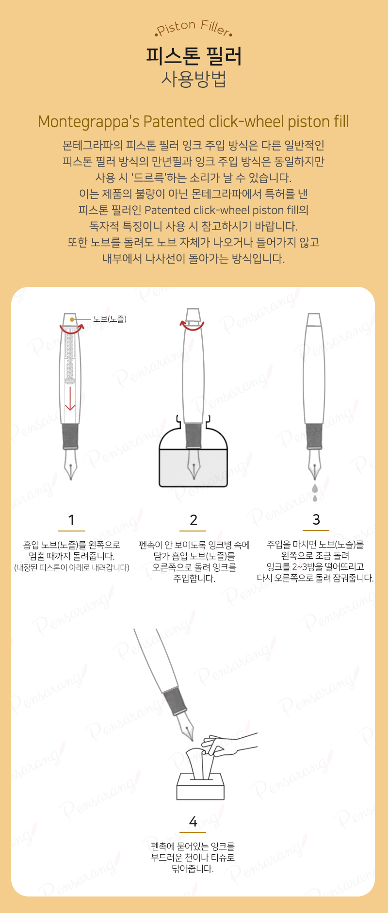 수작업으로 제작되는 필기구의 특성상, 각 펜마다 고유한 패턴과 무늬를 지니고 있습니다. 같은 제품이라도 배럴의 무늬, 패턴, 질감, 칠 등의 표현이 일정하지 않을 수 있으며 상품 페이지의 이미지와 다소 상이할 수 있습니다. 이는 수작업으로 제작된 제품의 자연스러운 특성으로 제품 하자의 사유로 간주되지 않습니다.