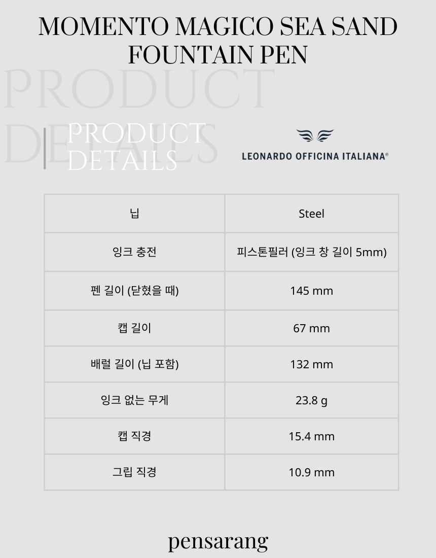 레오나르도 오피치나 이탈리아나 모멘토 매지코 씨 샌드 만년필 스틸 닙
