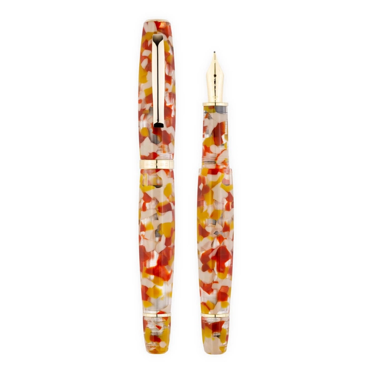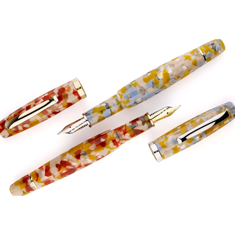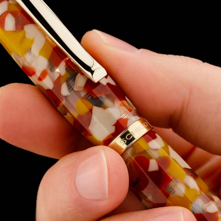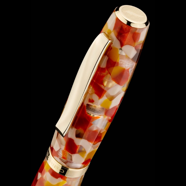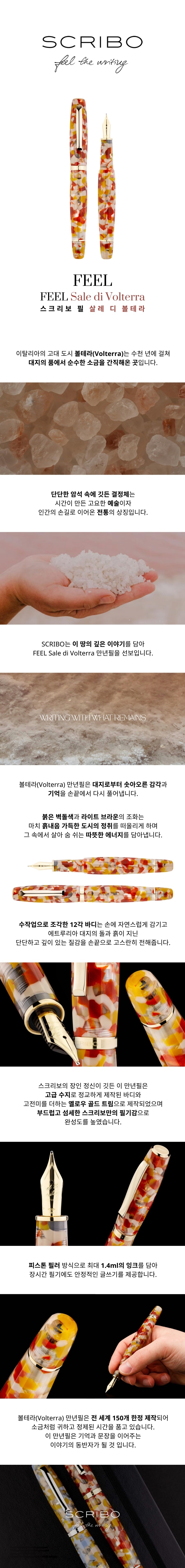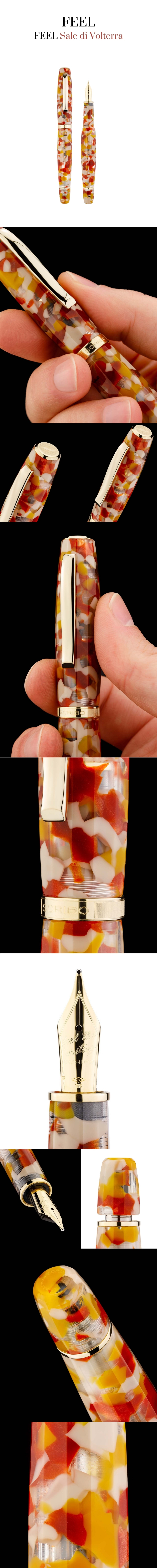 FEEL Sale di Volterra는 이탈리아 볼테라의 대지 깊숙한 곳에서 채굴되는 고대의 소금에서 영감을 받은 만년필입니다. 반투명한 브릭 레드와 오커 톤 레진 바디는 토스카나 풍경의 따뜻한 흙빛을 담아내며, 옐로우 골드 피니시 디테일이 깊이 있는 존재감을 더합니다. 소금 결정의 질감을 연상시키는 표면 처리로 손에 닿는 감각까지 섬세하게 설계되었으며, 자연과 시간, 물질의 본질을 담은 차분한 필기 경험을 제공합니다. 전 세계 150피스 한정 생산으로 선보입니다.
