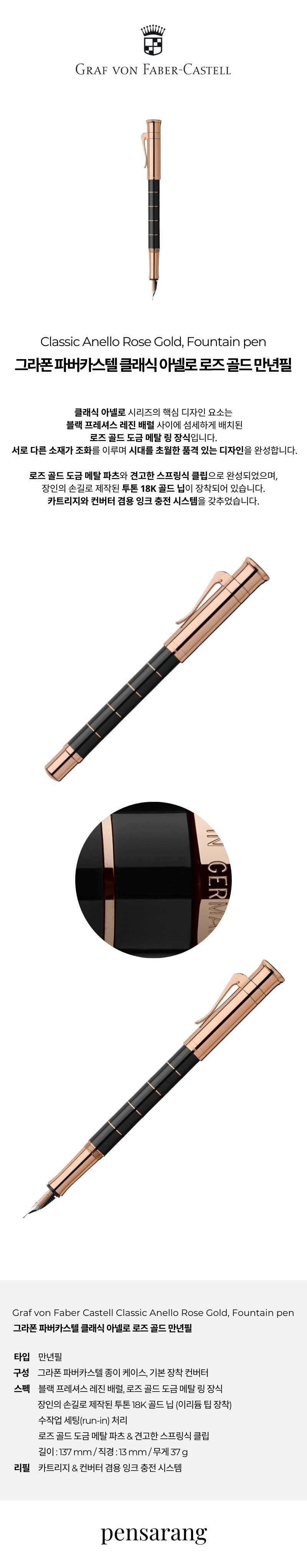 그라폰 파버카스텔 클래식 아넬로 로즈 골드 만년필 (18K)(145781, 145782)