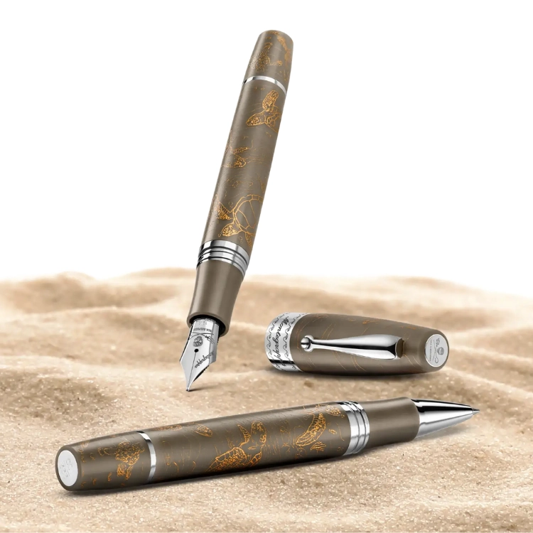 지중해의 바다에서 탄생한 새로운 리미티드 에디션은 해양 생태계에 대한 존중과 지속 가능성의 메시지를 담고 있습니다.Sea Shepherd: Caretta caretta는 Sea Shepherd 자원봉사자들이 회수한 유령어망을 iMilani가 PSV 인증 공정을 통해 재생한 레진과 스털링 실버 925로 수작업 제작된 만년필로, 바다를 향한 사랑을 실질적인 보호의 행위로 구현한 작품입니다. 각각의 만년필은 해양 보호에 대한 선언이자 장인정신이 깃든 오브제입니다. 총 333본 한정 생산,