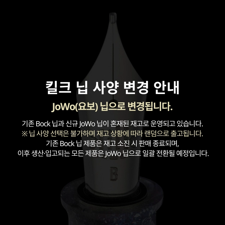 수작업으로 제작되는 필기구의 특성상, 각 펜마다 고유한 패턴과 무늬를 지니고 있습니다. 같은 제품이라도 배럴의 무늬, 패턴, 질감, 칠 등의 표현이 일정하지 않을 수 있으며 상품 페이지의 이미지와 다소 상이할 수 있습니다. 이는 수작업으로 제작된 제품의 자연스러운 특성으로 제품 하자의 사유로 간주되지 않습니다.