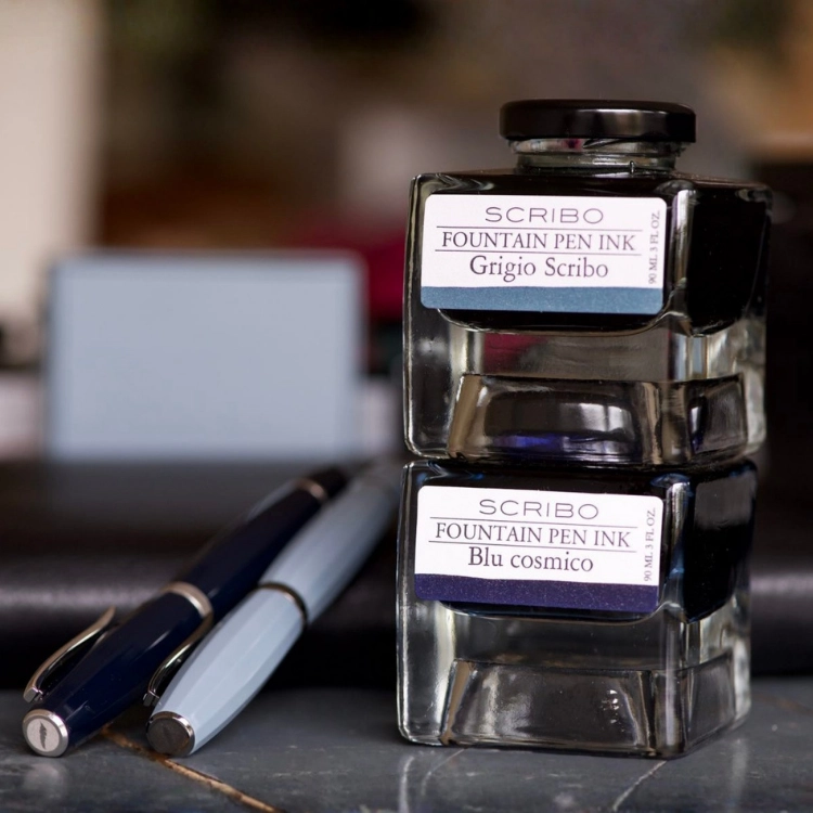 SCRIBO는 새로운 만년필 잉크 컬렉션의 컬러를 통해 만년필을 위한 색채의 스펙트럼을 글쓰기 경험에 더하며, 가장 독창적이고 진정성 있는 영감을 선사합니다. 이 수성 잉크는 특히 스크리보의 엑스트라 플렉시블 닙과 함께 최상의 필기 경험을 제공하도록 정밀하게 제작되었습니다. 모든 색조는 순수한 수성 안료로 구현되었으며, 90ml(3 fl oz) 용량의 각진 스퀘어 병에 담겨 쌓아 보관하기 쉽고, 오래도록 즐길 수 있는 글쓰기 시간을 제공합니다.