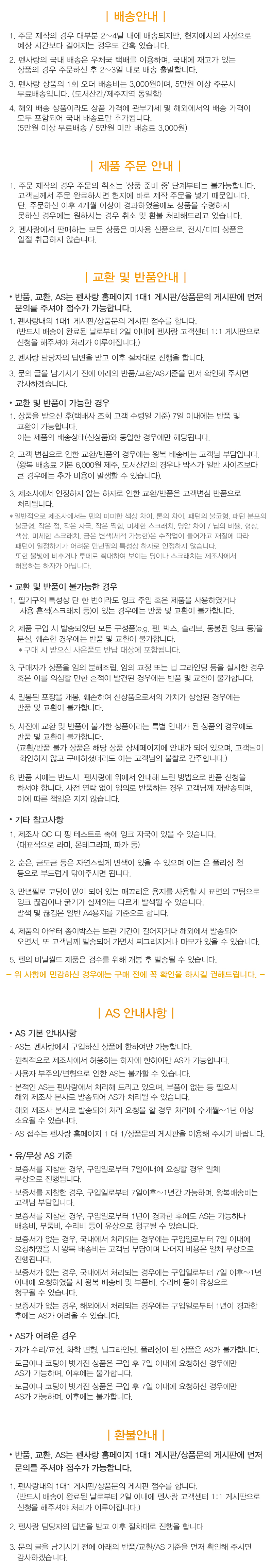 펜사랑 AS 기본 사항