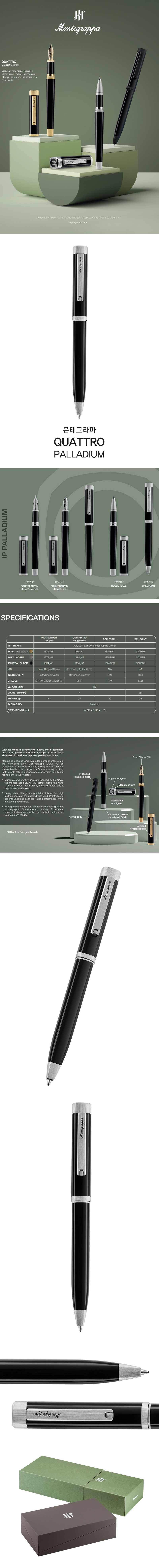 콰트로(Quattro)는 무드 있는 메탈 피니시와 현대적인 ‘스타디움’ 크라운 디자인이 더해진, Montegrappa의 차세대 필기구 라인입니다. 매끄러운 스틸 트림과 정교한 금속 마감, 그리고 사파이어 크리스탈 디테일이 조화를 이루어 타협 없는 강인함과 현대적 우아함을 동시에 제공합니다. 묵직하게 다듬어진 스틸 구조는 안정적인 필압을 형성하며 풍부한 필기 경험을 선사합니다.