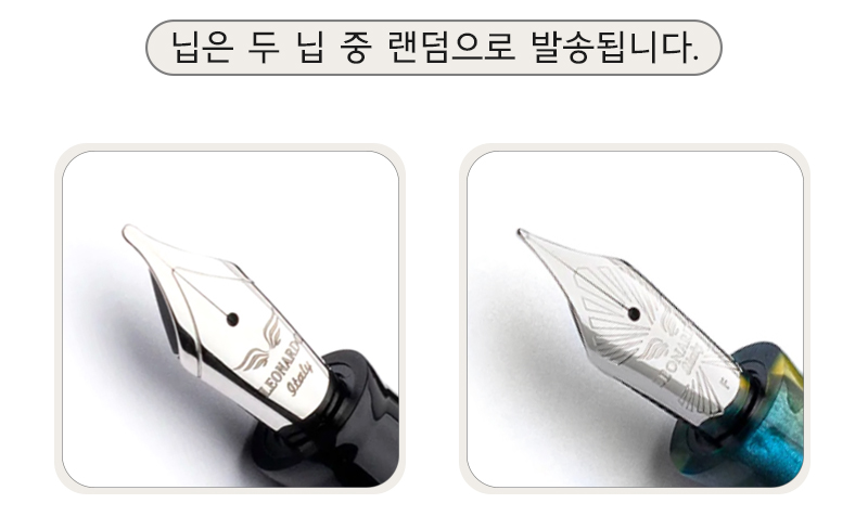 수작업으로 제작되는 필기구의 특성상, 각 펜마다 고유한 패턴과 무늬를 지니고 있습니다. 같은 제품이라도 배럴의 패턴, 질감, 칠 등의 표현이 일정하지 않을 수 있으며 상품 페이지의 이미지와 다소 상이할 수 있습니다. 이는 수작업으로 제작된 제품의 자연스러운 특성으로 제품 하자의 사유로 간주되지 않습니다.