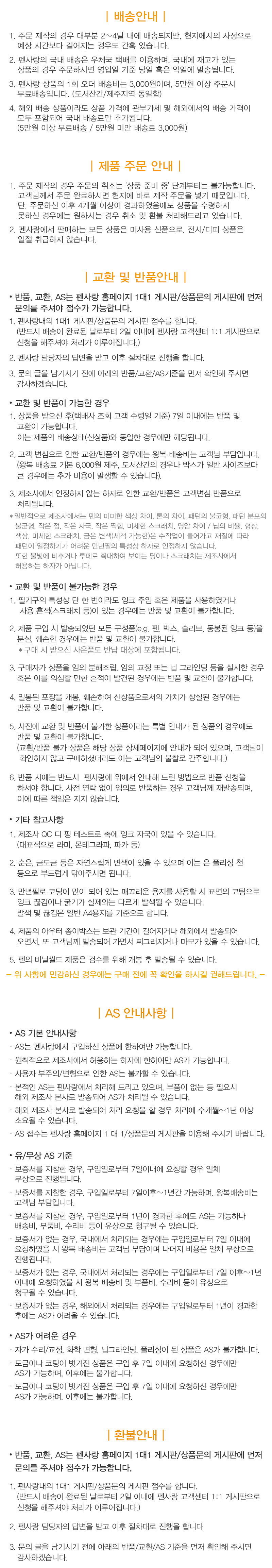▫︎ 제조사에서 불량으로 인정하지 않는 사항으로 인한 교환 및 반품은 고객 변심의 사유로 처리됩니다.