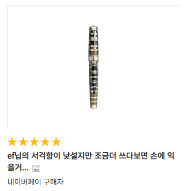 수작업으로 제작되는 필기구의 특성상, 각 펜마다 고유한 패턴과 무늬를 지니고 있습니다. 같은 제품이라도 배럴의 패턴, 질감, 칠 등의 표현이 일정하지 않을 수 있으며 상품 페이지의 이미지와 다소 상이할 수 있습니다. 이는 수작업으로 제작된 제품의 자연스러운 특성으로 제품 하자의 사유로 간주되지 않습니다.