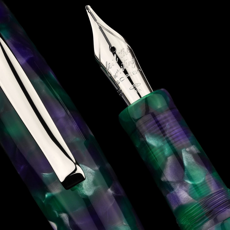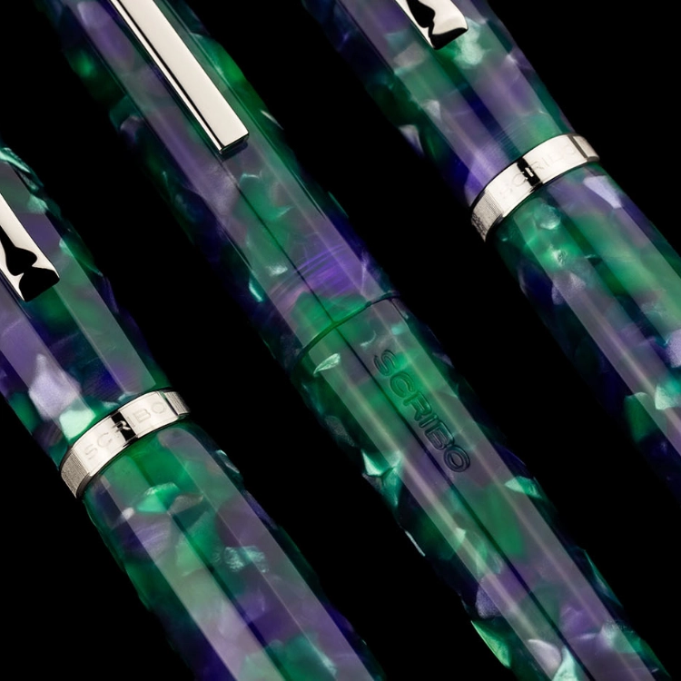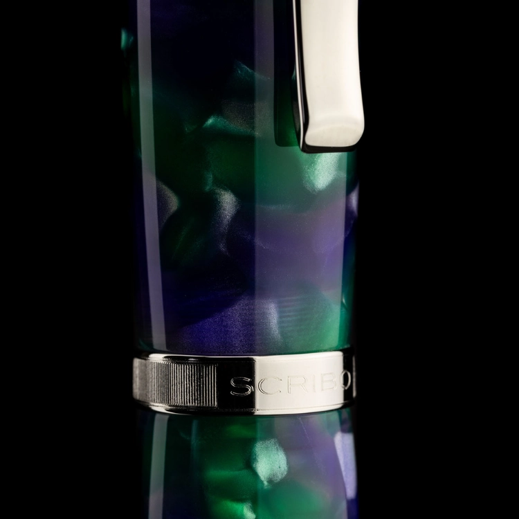LA DOTTA Glicine는 봄이 오면 볼로냐의 도시를 연보랏빛으로 물들이는 위스테리아(글리치네, Glicine)에서 영감을 받아 탄생한 스페셜 에디션 만년필입니다. 작은 덩굴식물인 위스테리아는 아름다움과 관능미를 상징하는 꽃이지만, 유럽에서는 오랫동안 우정과 신뢰의 상징으로 여겨져 왔습니다. SCRIBO는 이러한 의미를 담아, 오랜 시간 함께해 온 스크리보 애호가들에게 전하는 우정과 감사의 표시로 FEEL, LA DOTTA, PIUMA 세 가지 만년필을 하나의 특별한 Glicine 트리오 에디션으로 선보입니다. 꽃의 바이올렛 컬러와 식물의 그린 뉘앙스를 조합한 밝고 생동감 있는 레진에 플래티넘 마감을 더해, 우아하면서도 따뜻한 인상을 완성했습니다. 각 모델은 90피스 한정 수작업 제작되는 리미티드 에디션입니다.