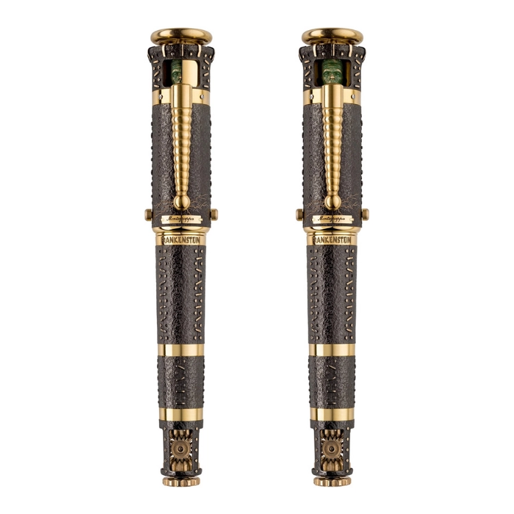 빈티지 할리우드 무대 연출과 기계적 광기가 호러 아이콘에게 바치는 헌사의 핵심 요소로 결합됩니다. 몬테그라파만의 ‘매드 사이언스’는 1931년 영화 클래식의 마법을 다시 불러오는 소품과 특수 효과를 통해 프랑켄슈타인의 창조물을 다시 살아 움직이게 합니다. XXL 사이즈의 올-브라스 바디에는 에너지가 맥동하듯 흐르며, 감각을 다시 일깨우는 독창적인 메커니즘이 더해져 하이엔드 필기구에 유쾌한 재미를 불어넣습니다. 총 230본 한정 생산.