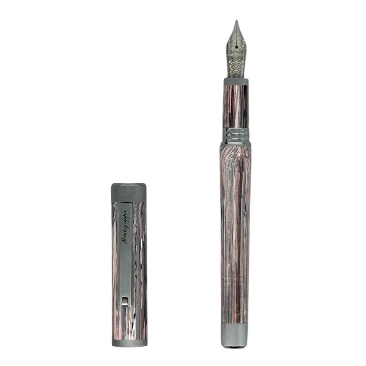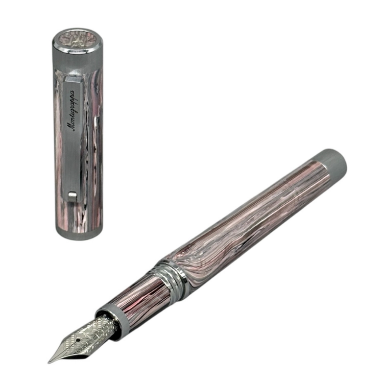 몬테그라파가 자체 개발한 Montegrappite 소재를 적용해 깊이 있는 컬러와 은은한 광택, 손끝에 전해지는 촉감까지 섬세하게 완성한 모델입니다. 화사한 핑크 컬러에 연한 분홍과 그레이 톤을 조화롭게 더해 차분한 깊이를 완성했습니다. 부드럽고 감성적인 무드 속에서 고급스러움과 트렌디한 감각을 함께 표현합니다. 각 펜마다 서로 다른 패턴을 지니고 있어 하나뿐인 개성을 느낄 수 있습니다. 카트리지/컨버터 잉크 충전이 가능합니다.